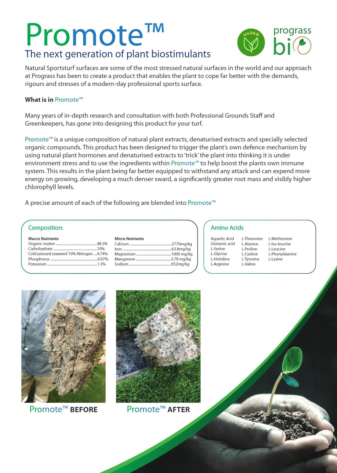 Natural Sports turf surfaces are some of the most stressed natural surfaces in the world. The approach at Prograss Bio has been to create a product that enables the plant to cope far better with the demands, rigours and stresses of a modern-day professional sports surface.